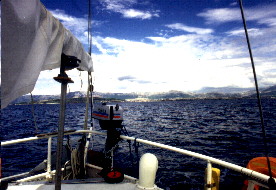 Am Sonntag liefen wir schon um 6.00 Uhr aus und segelten dann in der aufgehenden Sonne entlang der Küste nach Südosten. Der Kurs nach Otranto und nach Othoni (GR) ist für die ersten 30 Sm fast gleich. Da es so gut lief, entschieden wir, gleich weiter zu laufen in Richtung Griechenland. Der Wind wurde dann noch besser und wir brausten mit 6 - 7 Konten bei rauhem Wind und höher werdender See dahin. Wir hatten blauen Himmel und sehr gute Sicht. Vor Sonnenuntergang kam auf 30 Sm Entfernung bereits Othoni in Sicht. Als es dunkel wurde, refften wir zur Sicherheit und nahmen den Besan weg. Mit richtiger Sausefahrt ging es dann unter einem unwirklich klaren Abend- und Sternenhimmel dahin, nur ab und zu klatschte eine Welle aufs Schiff. Wir waren aber trocken im Steuerhaus. Um 24.00 Uhr ankerten wir dann in der Südbucht der Insel, wo das Wasser zwar wieder ruhig war, aber es gingen ständig Fallböen mit 7 Windstärken in die Bucht. Die Insel ist zwar klein, aber 450 m hoch. Mit Schlaf und Ankerwache vertrieben wir uns den Rest der Nacht. Morgens schlief der Wind ein und wir mußten gestern bis Korfu motoren. Das Einklarieren geht hier nicht so schnell wie in YU, aber mit 1 1/2 Stunden ging es für hier sehr schnell. Hier sind nur die Wirte und Kaufleute fix. Alle anderen sind die Erfinder der Arbeitseinteilung, damit sie möglichst lange reicht. Ich frage mich, wieso die da immer noch Arbeitslosigkeit haben. Aber das ist der Süden.